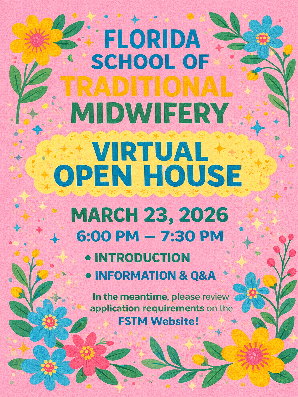Join us for the Virtual Open House with The Florida School of Traditional Midwifery on March 23, 2026, from 6:00 PM – 7:30 PM. We will introduce you to our mission, our community, and the powerful work of midwifery. You’ll enjoy an engaging Introduction, followed by our Information + Q&A Session, where you can get answers, clarity, and encouragement as you explore this transformative career path.